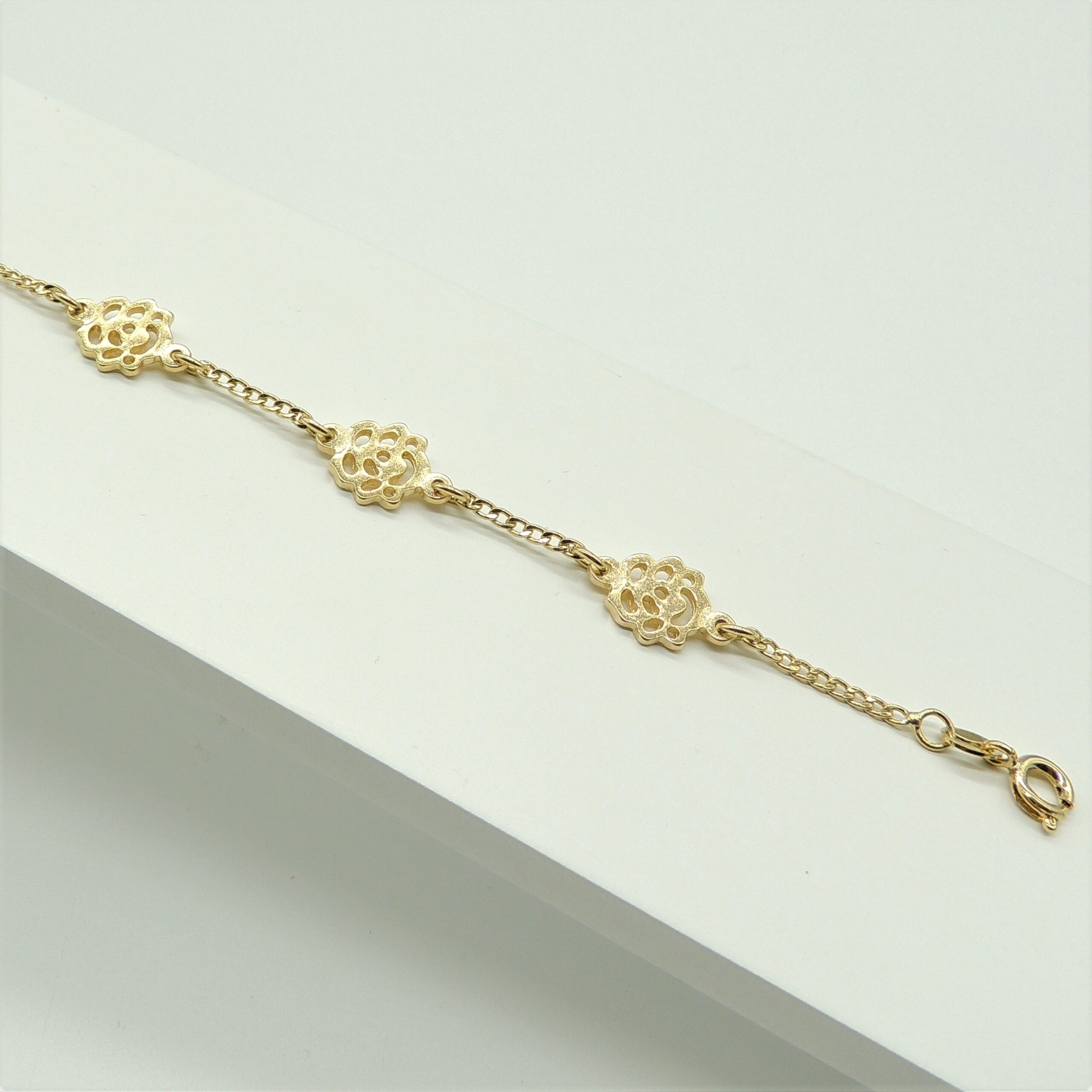 Pulsera 15Cm C/Dijes Rosas Enchapado En Oro